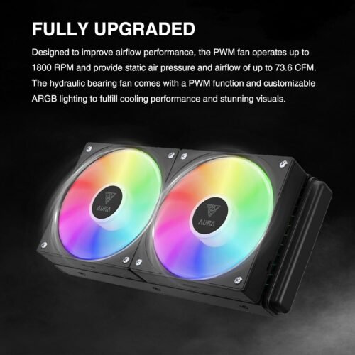 GAMDIAS AURA GL240 V2 ARGB AIO CPU Liquid Cooler , 240mm Radiator, 2 x 120mm PWM Fans, Cooling System w/ Hidden Cable Design, Rotatable Mirror Style ARGB Pump for Intel/AMD Ryzen – BLACK AURA-GL240-V2-B